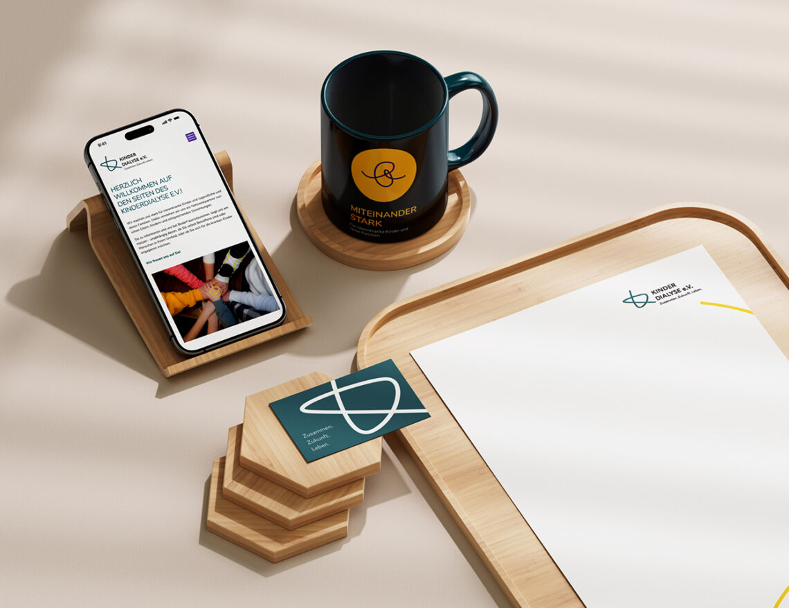 Mit neuem Logo, klarer Farb- und Schriftwelt, einer modernen Website, Infomaterialien und Geschäftsausstattung haben wir einen Auftritt geschaffen, der die Reichweite des Vereins nachhaltig stärkt. Einen, der Brücken baut – zwischen Familien, Fachleuten, Unterstützenden und all jenen, die helfen wollen, das Leben nierenkranker Kinder ein kleines Stück leichter zu machen.